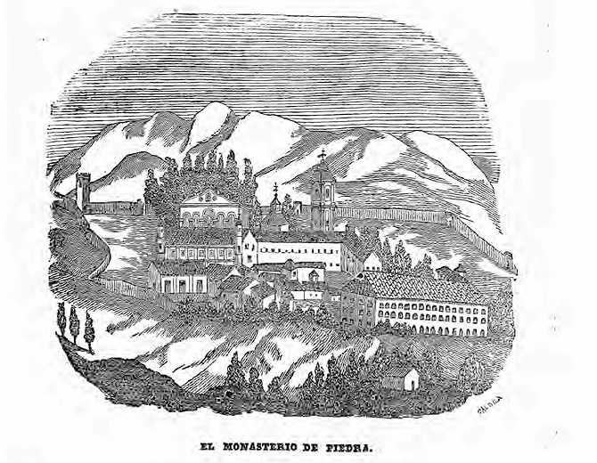 Hoy todos se apresuran á visitar el ex-monasterio y actual fonda de Piedra, y al par que se ensalzan las maravillas de la naturaleza, realzadas y exploradas hasta con luces de Bengala, es de rigor en casi todos los escritores, turistas y visitadores, murmurar de los antiguos monjes. Lo que allí hay lo saben todos. Periódicos políticos, artículos de revistas nacionales y extranjeras, libros en sentido liberal y en sentido católico (uno de estos, el de Vd., mi querido amigo y Director de esta Revista), lo han dado y están dando a conocer; y de paso algo de lo antiguo y de su arqueología. Pero ¿hay quien describa por contraposición de lo que fue aquello en tiempo de los monjes, en el primer tercio de este siglo? Pocos quedan ya para decirlo, y esos callan. Yo ví el monasterio en mi adolescencia y en mi juventud. Yo lo ví cuando había allí Abad y monjes, y me honré más adelante con la amistad del último Abad y de lagunos de los antiguos pobladores del monasterio; y vi también, doce años después, es esqueleto de aquel edificio, el cual había visto lleno de vida; y ví quemar los altares y la desolación del templo del santuario.