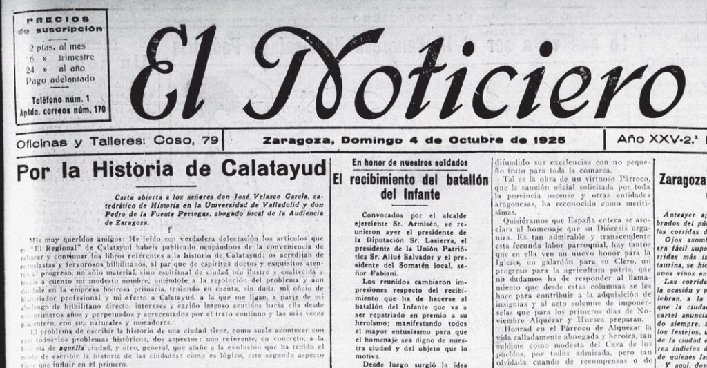 Las tropas de D. Pedro el Cruel sitiaron en vano el enriscado pueblo, al cual defendía en otro tiempo doble muralla torreada, que cerraba lo que podíamos llamar el istmo. Y añaden los cronistas de aquella tierra, y entre ellos Martínez del Villar, célebre jurisconsulto de Munébrega, que exasperado D. Pedro por la resistencia, mandó a los canónigos de la célebre colegiata del Santo Sepulcro en Calatayud, cuyo era el pueblo, mandasen á los vecinos que se rindieran. Pero el canónigo que entró no quiso salir, y exhorto al pueblo a resistir a todo trance, lo cual llevó el Rey muy a mal, y lo hizo pagar a los otros canónigos en Calatayud, quemándoles casa y archivo.