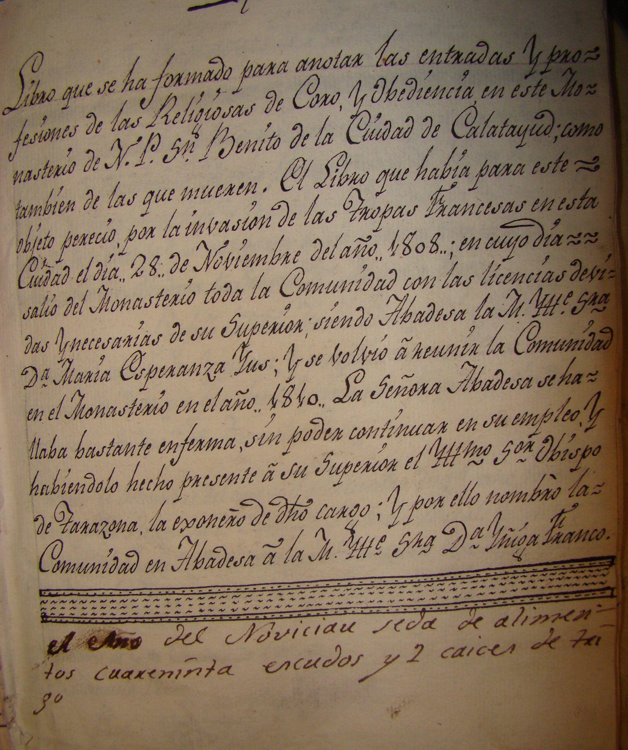El fondo de Corella documenta la vida del monasterio desde su fundación en 1669, hasta la época reciente, e incluye además documentación personal de especial interés histórico vinculada a sus protectores.
